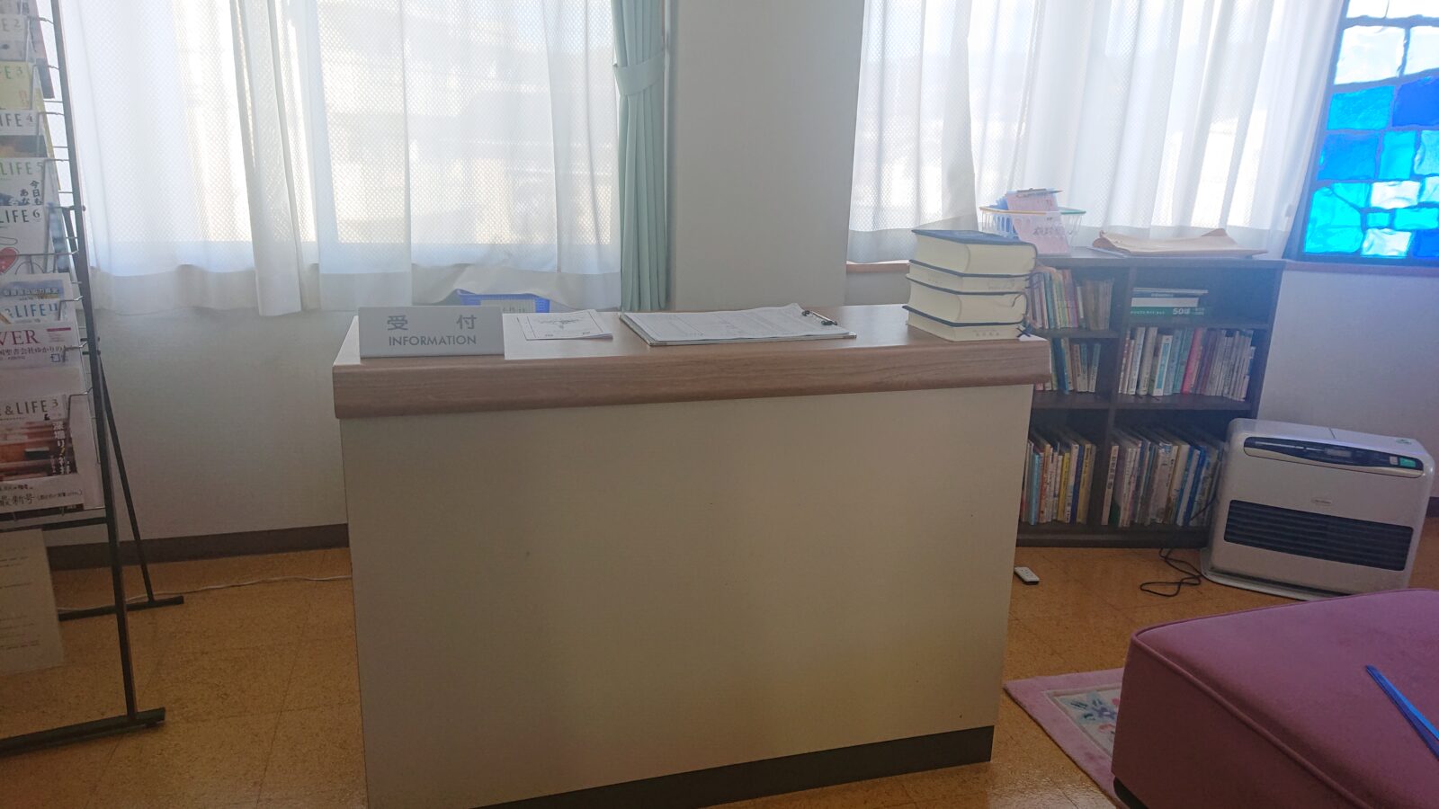 2階に上がられましたら、受付にお立ち寄りください。初めての方にはご案内係が聖書の貸出しや週報のご案内などさせていただきます。わからないことがあればどうぞお気軽にお声掛けください。