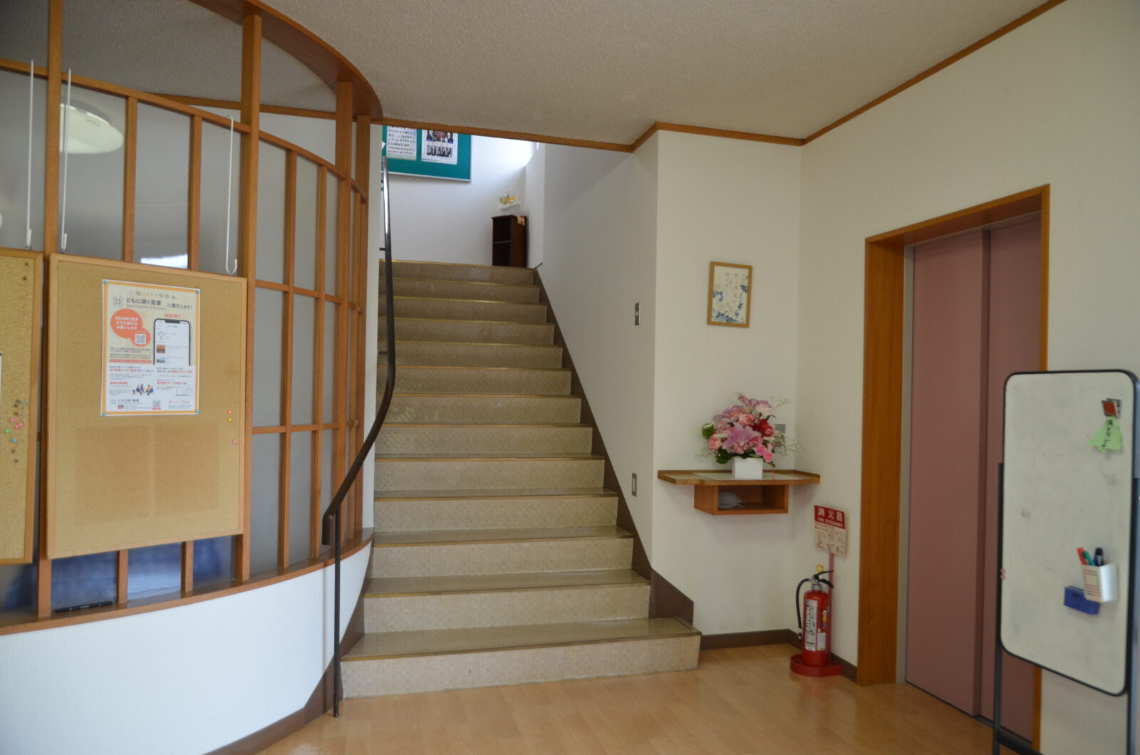 玄関ロビーに係がおりますので、ご案内いたします。
